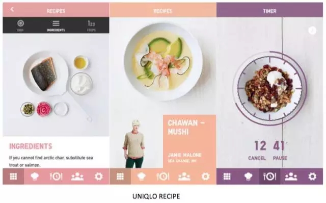 優(yōu)衣庫(kù)出品的RECIPE,是一個(gè)讓人眼前一亮的設(shè)計(jì)案例,多彩色的設(shè)計(jì)風(fēng)格融入到整個(gè)APP中,不論是切換標(biāo)簽頁(yè),還是在內(nèi)容組塊中滾動(dòng),都會(huì)變更不同的主題色。色彩切換的時(shí)候,還會(huì)有淡入淡出的效果,讓切換變得自然而然,完全不生硬。