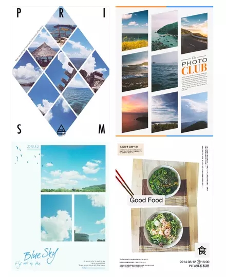 此外,對(duì)于用戶自己生產(chǎn)內(nèi)容的App來說,把用戶的圖片和文字內(nèi)容合成在一個(gè)排版好的模版里面,再分享出去,也是一個(gè)能展現(xiàn)設(shè)計(jì)水平的方式。天天P圖的海報(bào)拼圖,就是一個(gè)功能化后的海報(bào)式分享。用戶將自己拍攝的照片,添加到設(shè)計(jì)好的海報(bào)模版中,可以修改相應(yīng)的主題和文案,程序還能自動(dòng)識(shí)別照片時(shí)間、拍攝地點(diǎn),只要簡單的操作就能組合出一張屬于自己的海報(bào)。通過海報(bào)拼圖分享出去的照片,是不僅是通過設(shè)計(jì)師設(shè)計(jì)的模版來提升用戶照片逼格的成果,也是用戶氣質(zhì)與產(chǎn)品氣質(zhì)交織后的成果。