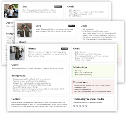 按照我們的邏輯順序,首先是創(chuàng)建角色。我們幾乎在所有項(xiàng)目中都會使用?;谖覀兊漠a(chǎn)品或服務(wù)的目標(biāo)群體,即不同的潛在客戶,構(gòu)建虛構(gòu)人物個(gè)性。這個(gè)工具可以讓我們更多地了解客戶的需求、問題、動機(jī)和行為。我們通過研討會、頭腦風(fēng)暴或通過定性和定量研究“簡單地”收集盡可能多的數(shù)據(jù)來實(shí)現(xiàn)這一目標(biāo)。