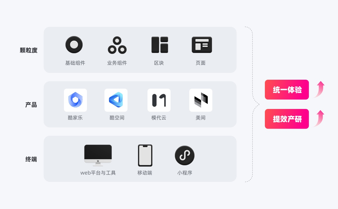 度量層:關鍵業(yè)務試點通過以AB對比線上效果、問卷捕捉用戶偏好、設計走查度量設計產(chǎn)出合格率;