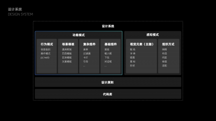 所以如何解決團(tuán)隊(duì)效率和產(chǎn)品質(zhì)量問(wèn)題?我們的解法是抽象體系化的解決方案:設(shè)計(jì)模式化和代碼化,設(shè)計(jì)從原子到全局進(jìn)行統(tǒng)一和優(yōu)化,并形成系統(tǒng)化的設(shè)計(jì)指導(dǎo),由開(kāi)發(fā)進(jìn)行模式代碼化,提供靈活可配置的規(guī)則。以此,設(shè)計(jì)有更系統(tǒng)化的設(shè)計(jì)原則,整體的統(tǒng)一性和體驗(yàn)有保障,設(shè)計(jì)和開(kāi)發(fā)周期也可以縮減,甚至大部分日常需求可直接由產(chǎn)品對(duì)接開(kāi)發(fā)直接上線(xiàn)。