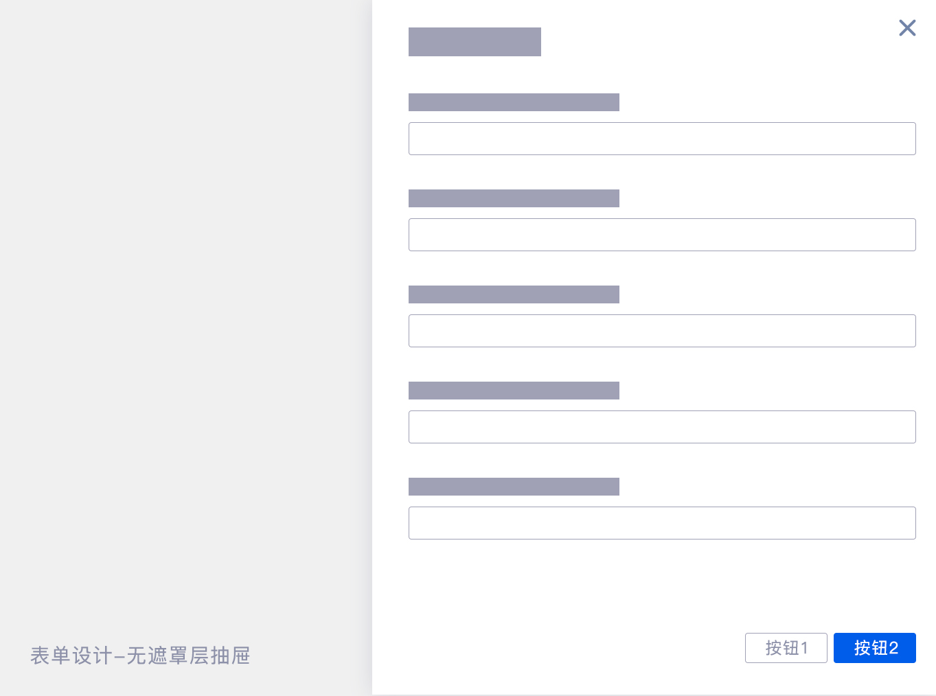 抽屜形式的表單展示方式是從屏幕右側(cè)彈出,有時(shí)候也會(huì)有從底部彈出的情況。這里主要分享從右側(cè)彈出的抽屜表單模式,抽屜模式還分為三種模式:有遮罩層的抽屜模式、無(wú)遮罩層的抽屜模式、擠壓模式。
