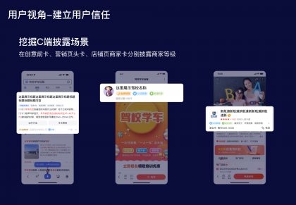 增加C端披露:通過挖掘C端披露場(chǎng)景,幫助用戶提高優(yōu)質(zhì)商家獲取效率