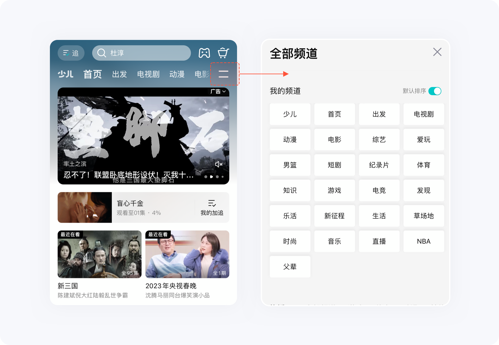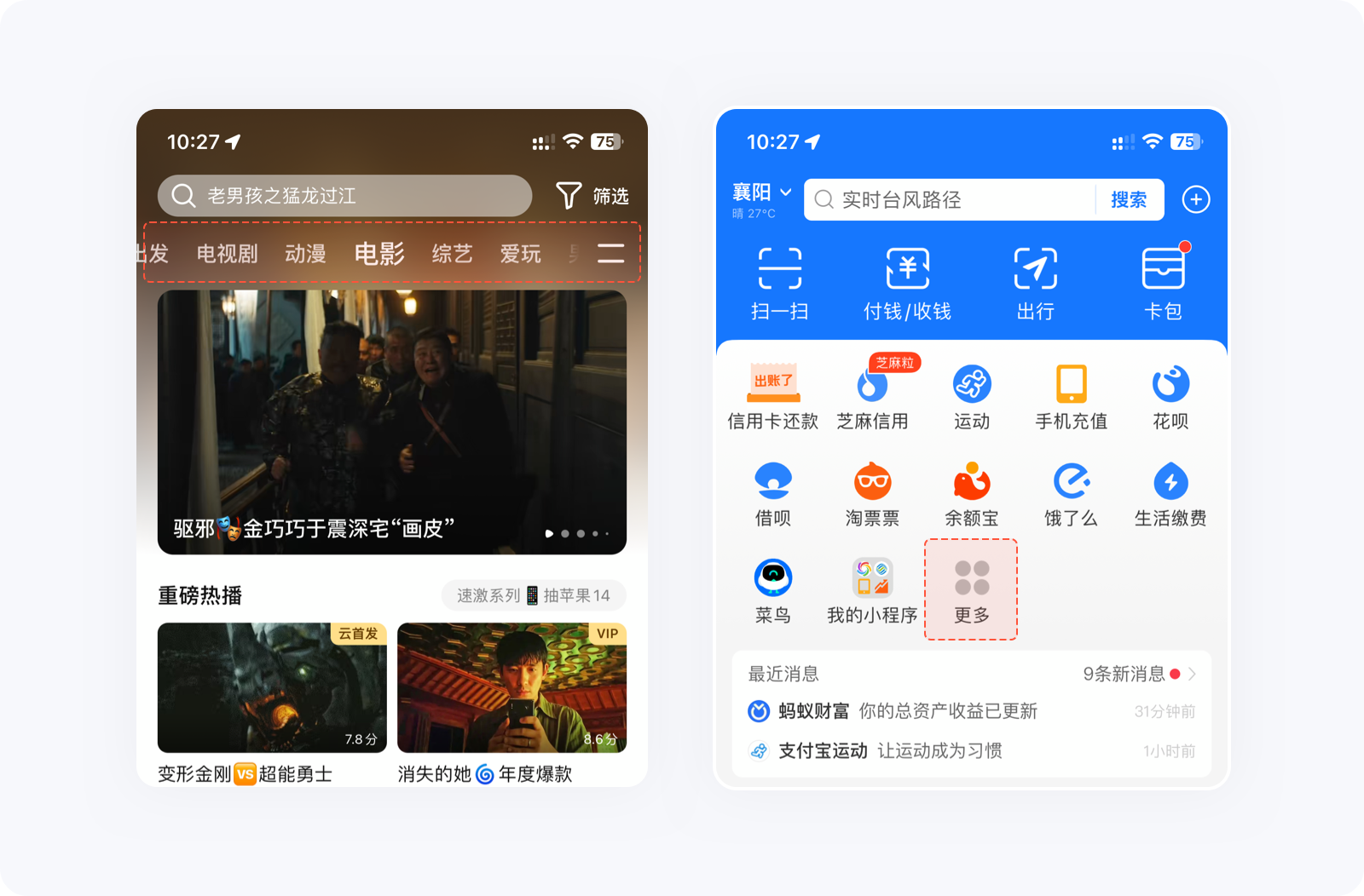 如果大量的選項(xiàng)無法減少,可將重要選項(xiàng)靠前,將其他的隱藏起來,方便用戶決策及降低失誤操作的概率。例如騰訊視頻頂部分類后面的更多圖標(biāo)、支付寶首頁金剛區(qū)的更多入口,點(diǎn)開后就會(huì)發(fā)現(xiàn),里面隱藏了非常多的功能,這樣做能減少用戶認(rèn)知負(fù)荷,提高信息篩選的效率。