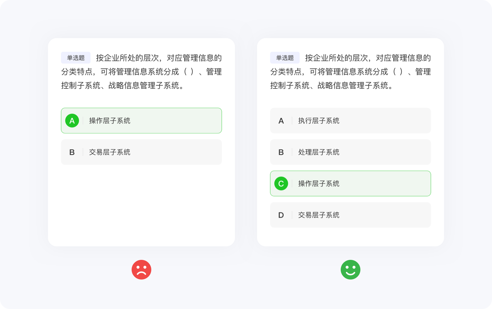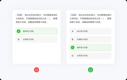 任何定律都有其自身的使用局限,所以也不要極度推崇希克定律而簡化到抽象的地步。大部分情況下,??硕啥际怯迷诳山换ソ缑嬷械脑兀瑢?duì)于那些需要高度搜索、閱讀或?qū)W習(xí)刷題類的功能并不適用,因?yàn)樵O(shè)計(jì)師只能決定信息呈現(xiàn)的視覺效果,并不能決定內(nèi)容的質(zhì)量、類型與數(shù)量。例如,刷題類應(yīng)用,面對(duì)海量的選擇題,??硕呻m然失去價(jià)值,但并不影響設(shè)計(jì)師結(jié)合其他方法論將界面設(shè)計(jì)的更好,總不能強(qiáng)行使用??硕?,將選擇題刪減到只剩兩個(gè)(變成判斷題)選項(xiàng)吧。