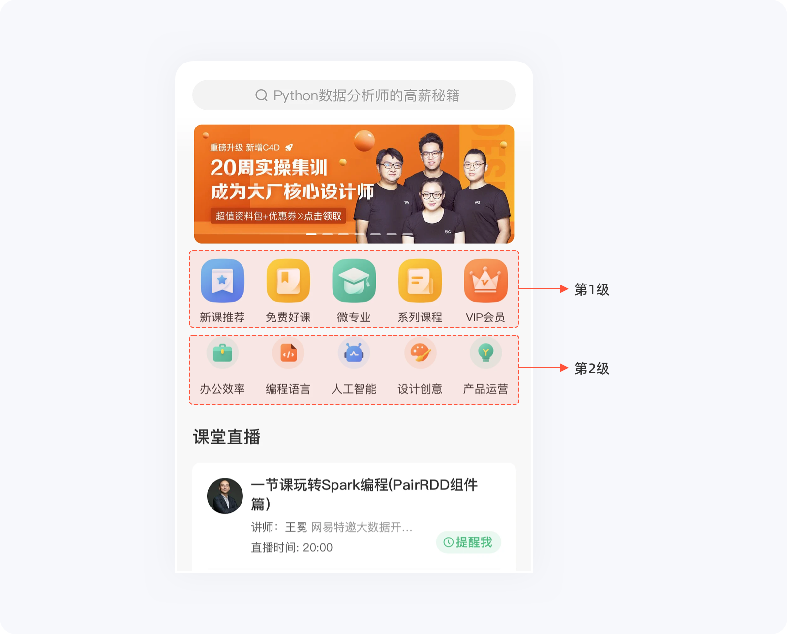這里最為典型的例子就是電商平臺(tái)的分類,它通過一級(jí)、二級(jí)、甚至三級(jí)分類將商品所涉及到的類型合理的控制在有效范圍內(nèi),這些選項(xiàng)被分類/分組之后,關(guān)鍵信息得到強(qiáng)化,能輔助用戶快速作出決策。還有后面的二次篩選功能,幫助用戶進(jìn)一步縮小范圍,選擇效率明顯會(huì)更高。當(dāng)然,這不僅僅是依靠希克定律,還得結(jié)合運(yùn)營需求、用戶數(shù)據(jù)等因素進(jìn)行合理化分類。