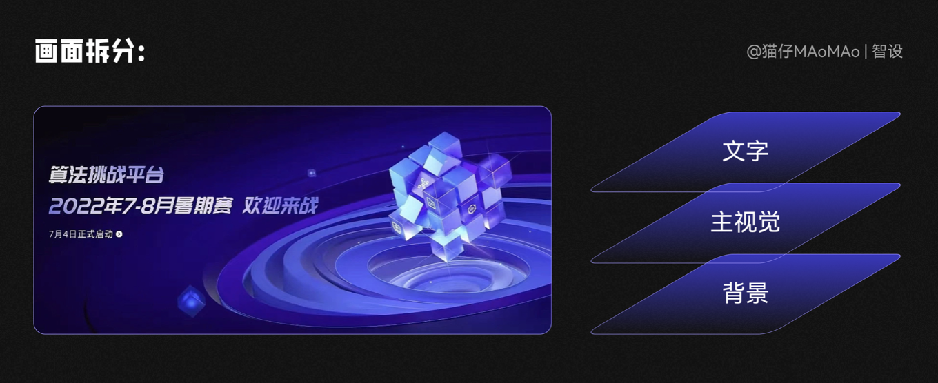 確定參考方向后,腦袋里面大致有了畫面思路,主視覺在畫面右方,螺旋狀背景突出主視覺,文字排版在左邊,整體色調(diào)為藍(lán)色+青色光感。這里我們對(duì)所選參考圖進(jìn)行拆分: