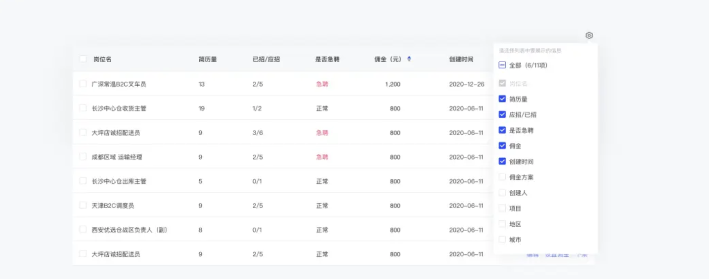 如果不同用戶想看到的信息側(cè)重不同,可以讓用戶自定義列的展示。在默認(rèn)情況下僅展示最常用、最重要的幾個(gè)指標(biāo)(如下圖)。這樣做的好處是:首先,用戶能在表格上方看到所有的指標(biāo)名稱,避免了原來需要橫向拖拽才能瀏覽到所有指標(biāo)的情況;其次,用戶可以根據(jù)自己的需要,自由的選擇顯示所需指標(biāo),隱藏不必要指標(biāo),減少干擾。但需注意系統(tǒng)應(yīng)記住用戶上一次的自定義列設(shè)置,減少用戶重復(fù)操作。