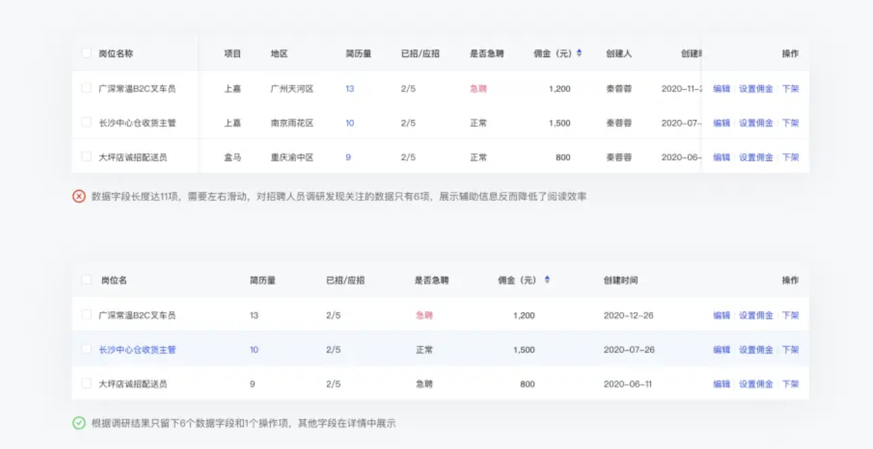基于對(duì)實(shí)際業(yè)務(wù)需求、目標(biāo)用戶訴求及其行為的理解,列數(shù)盡量控制在7±2,列舉用戶更為關(guān)注的數(shù)據(jù),用戶需要的非重點(diǎn)、輔助性信息可以在詳情中展示。