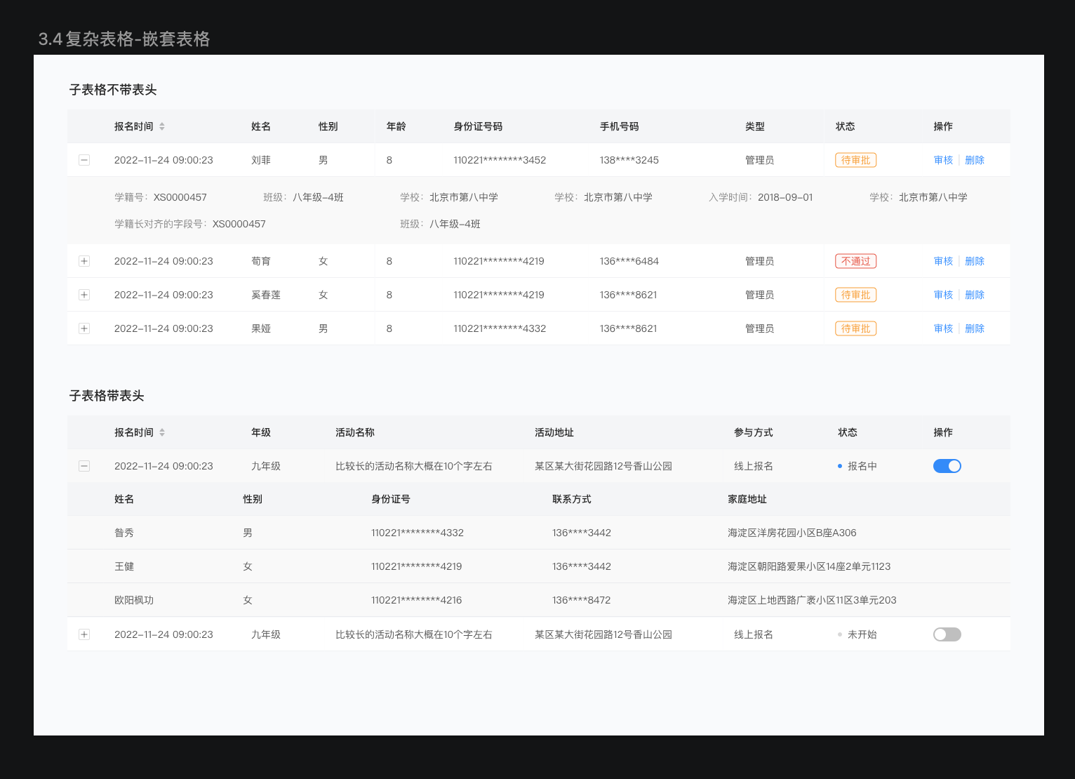 子表格 - 嵌套關(guān)系