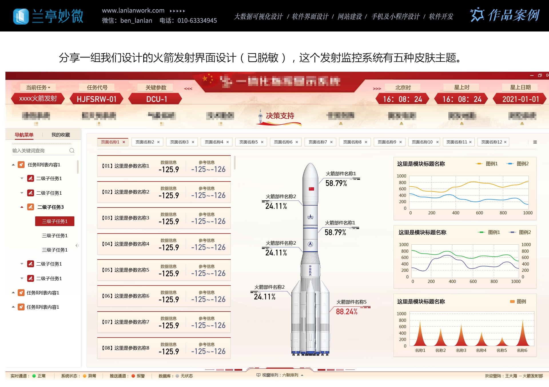 蘭亭妙微的設(shè)計(jì)內(nèi)容廣泛而深入。在戰(zhàn)場(chǎng)態(tài)勢(shì)展示方面,他們運(yùn)用先進(jìn)的可視化技術(shù),將復(fù)雜的戰(zhàn)場(chǎng)信息清晰地呈現(xiàn)給用戶,幫助用戶快速做出決策。在火箭發(fā)射領(lǐng)域,他們?cè)O(shè)計(jì)的界面簡(jiǎn)潔明了,操作流程順暢,確保發(fā)射任務(wù)的順利進(jìn)行。無(wú)人機(jī)、GIS 地圖、信號(hào)源等關(guān)鍵領(lǐng)域也都有他們的精彩設(shè)計(jì)。從交互原型設(shè)計(jì)到視覺(jué)風(fēng)格打造,從功能布局重塑到多維表格應(yīng)用,從 Qt 開(kāi)發(fā)到 VR 仿真實(shí)訓(xùn),蘭亭妙微全方位服務(wù)于航天軍工產(chǎn)品,為企業(yè)提供一站式的 UI 設(shè)計(jì)解決方案。