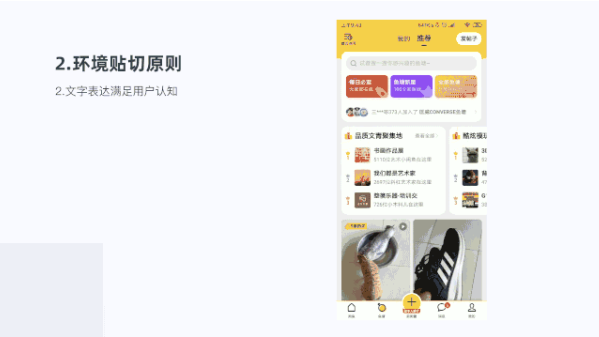 在魚塘頁面,文藝書畫、樂器等興趣魚塘,我們叫品質(zhì)文青聚集地,文藝青年在當(dāng)下比較火的網(wǎng)絡(luò)名詞,喜歡文化藝術(shù)的青年哈哈。符合用戶年齡人群的環(huán)境認(rèn)知。