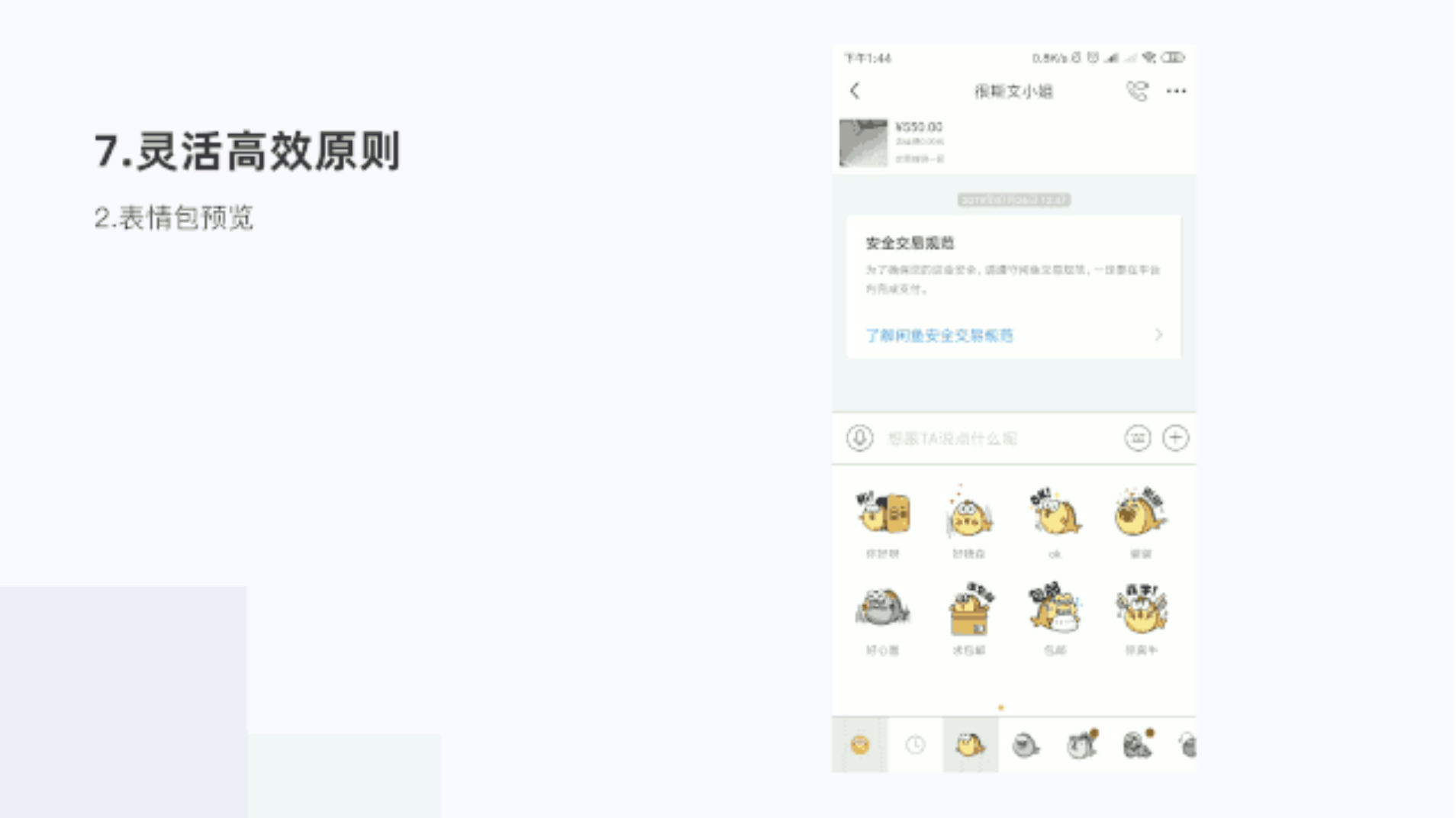 簡單理解就是靈活高效設(shè)計,滿足大多數(shù)用戶操作需求,操作高效便捷。因為不同產(chǎn)品類型不同,這里舉幾個常見類型說明,如自動回復(fù),表情包預(yù)覽、常用表情包 等。