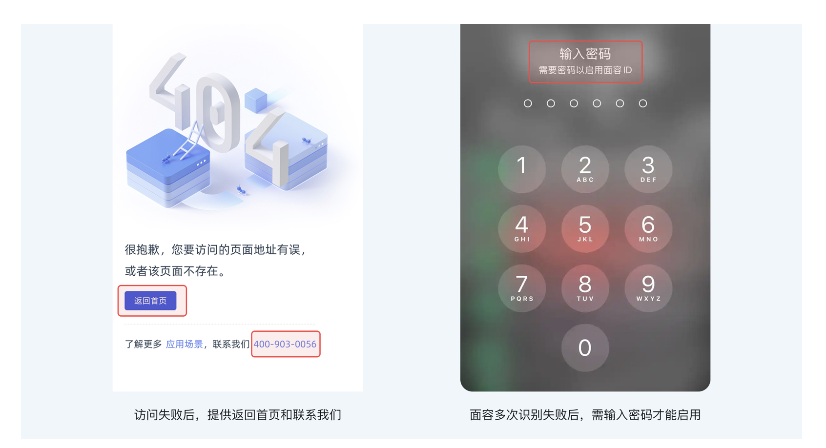 更貼心的設(shè)計:比如 Face ID 連續(xù)識別失敗后,系統(tǒng)會提示 “面容 ID 已鎖定,請輸入密碼解鎖”,并直接彈出密碼輸入框;支付時余額不足,會提示 “余額不足,是否使用微信支付?”,并一鍵跳轉(zhuǎn)微信支付頁面 —— 不讓用戶 “卡在錯誤頁面不知所措”,就是在幫用戶快速回到正確的流程里。