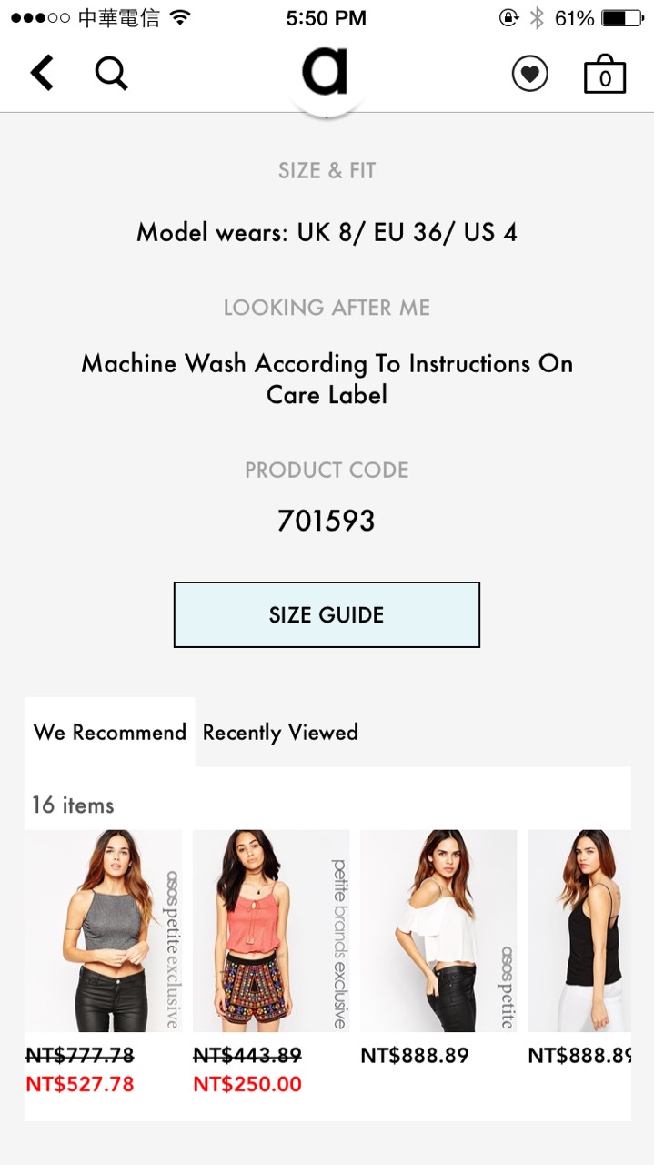 針對產(chǎn)品的呈現(xiàn),有一個要訣就是讓使用者永遠可以快速地掃是產(chǎn)品描述、一眼看到重點資訊(如:尺碼、價格等等)。而最重要的「購買」鍵,更應(yīng)該不管使用者到哪裡,它都要夠醒目;另外,也應(yīng)該附上「放入愿望清單」的選項,供用戶可以管理他想要購買的內(nèi)容;因為很多用戶都是利用通勤等零碎時間使用應(yīng)用,通常這些時間并不夠支撐用戶完成一個購物的流程,所以有欲望清單讓他可以先選好放著,是一個較佳的設(shè)計。