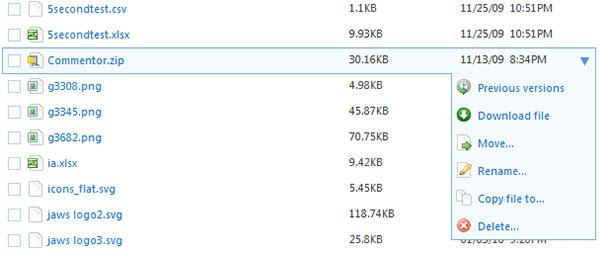 如果每一行里都有多種操作,可以通過(guò)鼠標(biāo)懸停或者單擊行的時(shí)候顯示這些操作。DropBox通過(guò)一個(gè)二級(jí)菜單展示了每個(gè)文件的多種操作,有效地使用了這種方式。