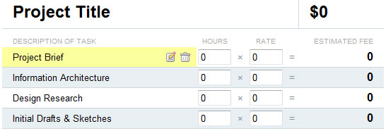 如果有多重操作,可以采取鼠標(biāo)懸停操作方式,該方式是由行內(nèi)操作引申而來(lái)。鼠標(biāo)懸停和鼠標(biāo)離開(kāi)分別顯示和隱藏操作,通過(guò)這種方式可以節(jié)省界面空間。Project Estimator by Astuteo 對(duì)每一行都有編輯和刪除操作,鼠標(biāo)懸停到某一行的時(shí)候則顯示操作按鈕圖標(biāo),離開(kāi)則不顯示。