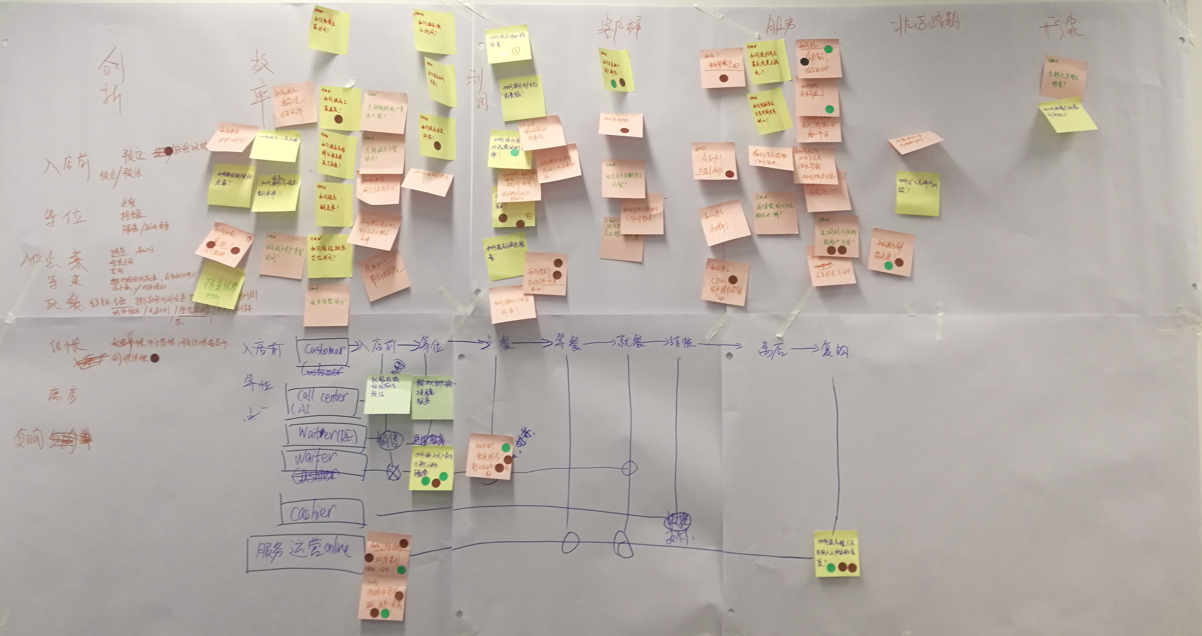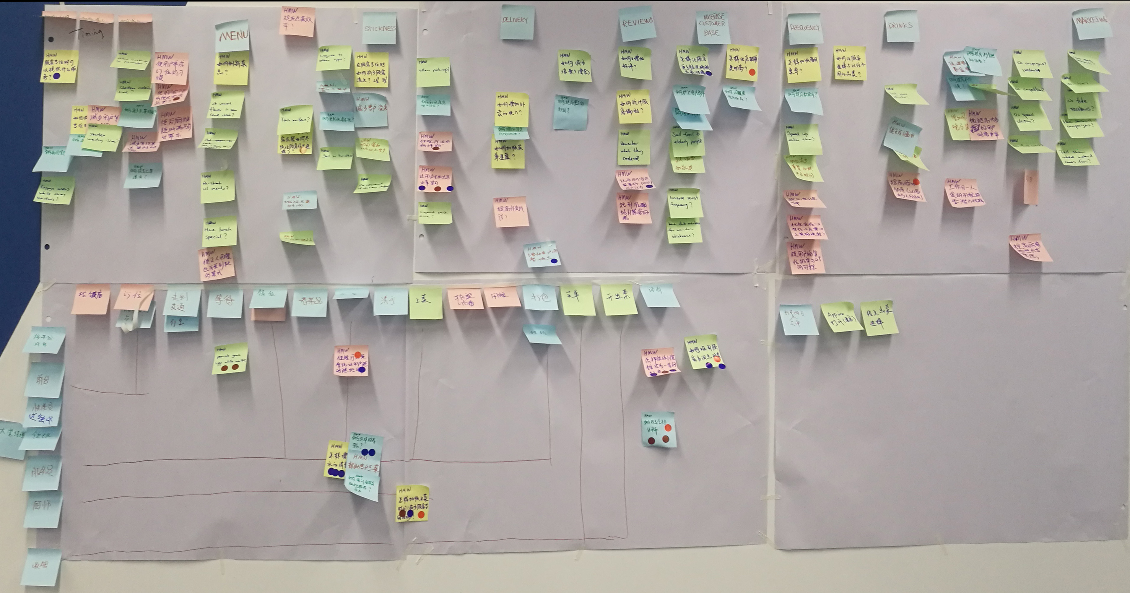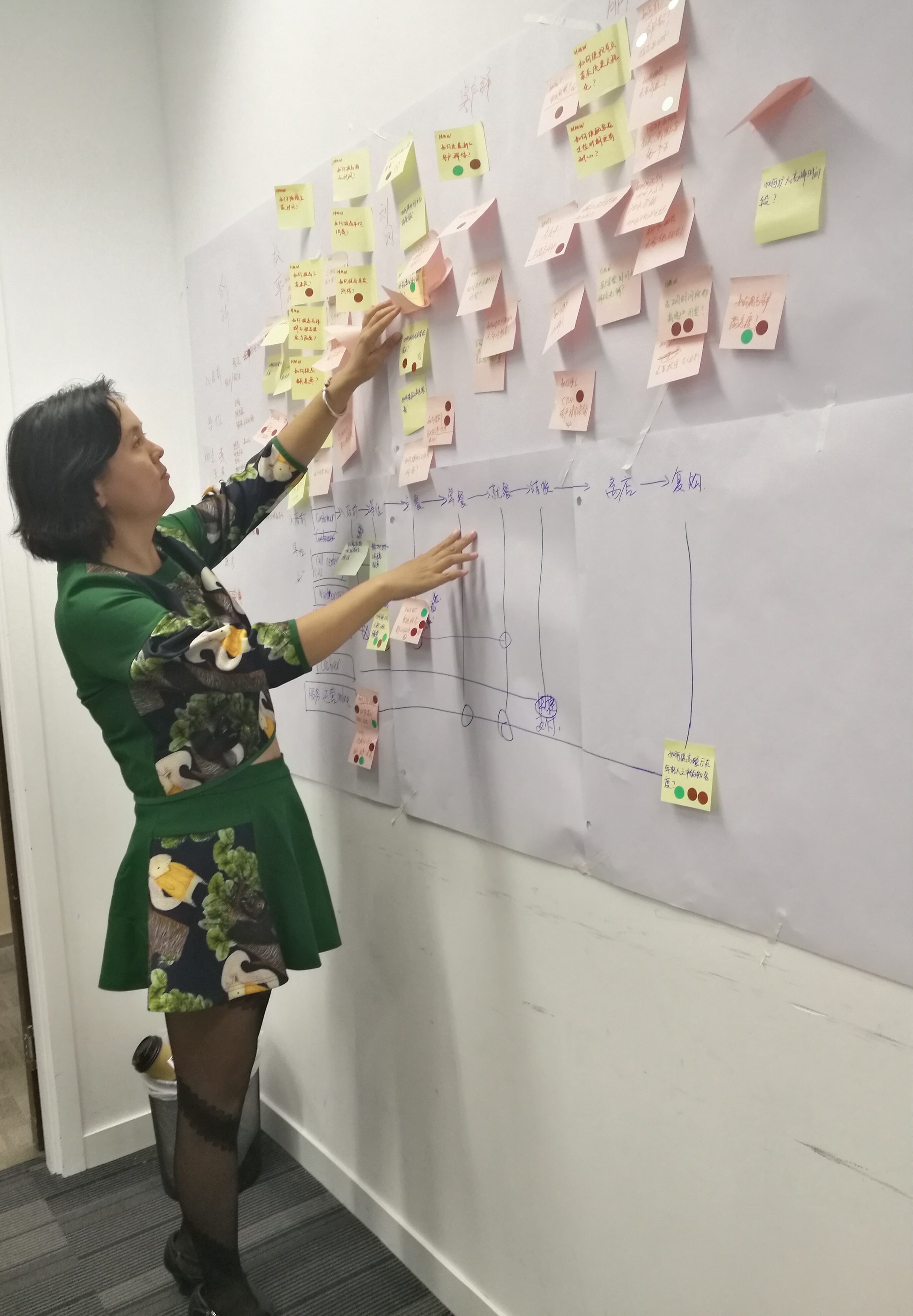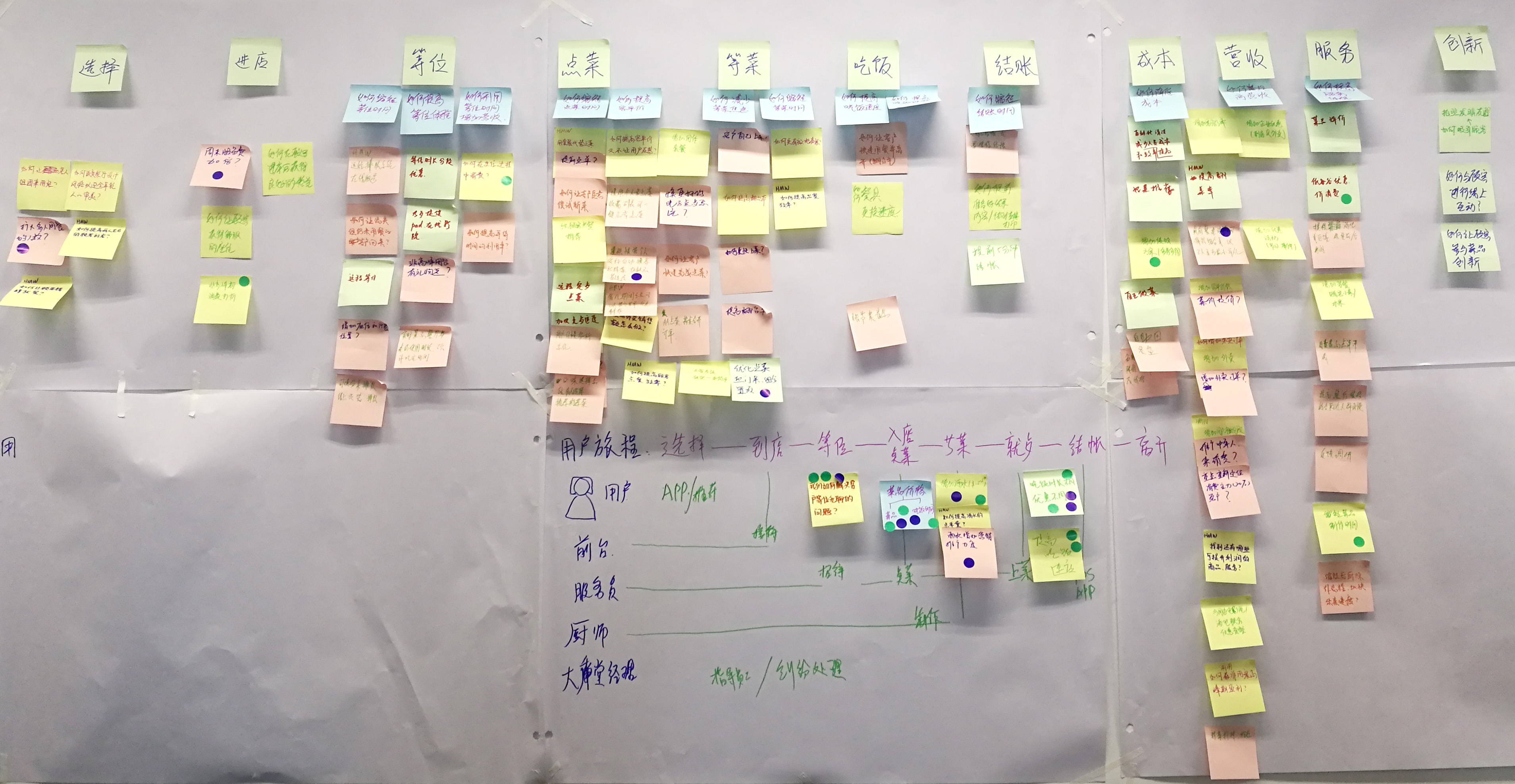 9把投票最多的標(biāo)簽貼到用戶體驗(yàn)地圖的相關(guān)位置上,有幾個(gè)問(wèn)題是得了四票的,大家此時(shí)都很有成就感。