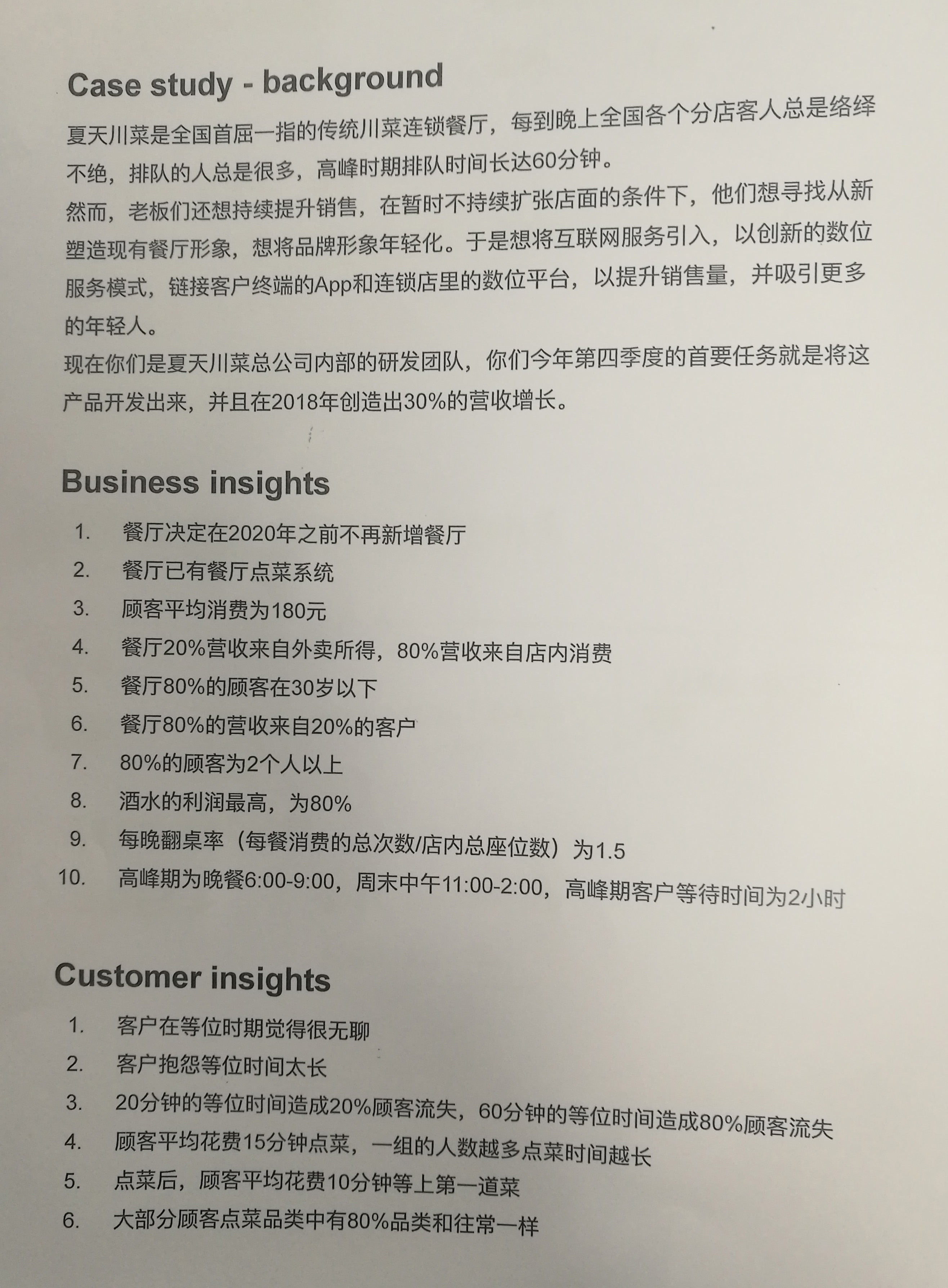 1第一步 老師發(fā)給我們一張紙,講了一個(gè)川菜館目前的情況,一些困難,想達(dá)到的目標(biāo)。讓我們先了解現(xiàn)狀和期望。