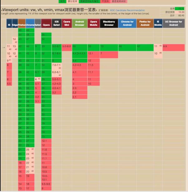 vw這個(gè)vw的方案,相當(dāng)而言還比較新。vw 即(viewport width)可視窗口的寬度。之所以把這個(gè)方案放在后面來(lái)說(shuō),是因?yàn)関iewport在去年(2017年)的時(shí)候存在不少的兼容性問(wèn)題,各個(gè)瀏覽器的支持并不是很好。但是來(lái)到了2018年這個(gè)時(shí)間點(diǎn),viewport單位意見(jiàn)得到了眾多瀏覽器的支持(80.45%)。
