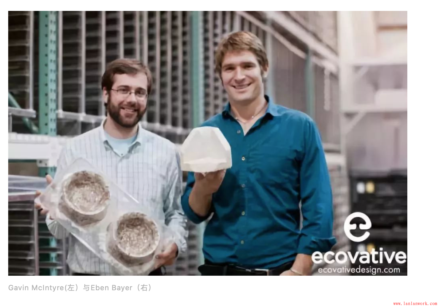 Eben Bayer和Gavin McIntyre很久之前就意識到了塑料對環(huán)境的破壞,但是一直找不到合適的替代品,直到一次樹林漫步時,不小心踢到了一塊木頭,發(fā)現(xiàn)了木頭上粘著的一些樹葉,中間帶有白色的菌絲狀的物質(zhì)。