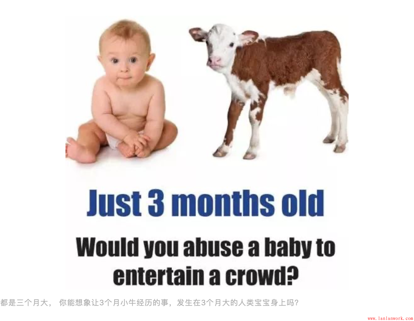 都是三個月大, 你能想象讓3個月小牛經(jīng)歷的事,發(fā)生在3個月大的人類寶寶身上嗎?