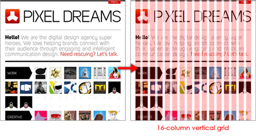花時(shí)間觀察一些簡潔風(fēng)格的網(wǎng)站 ,你會發(fā)現(xiàn)它們當(dāng)中的絕大多數(shù)都有用到經(jīng)過良好規(guī)劃的網(wǎng)格布局系統(tǒng)。如果哪位朋友對網(wǎng)格布局還不大了解的話,可以設(shè)想一下,在著手進(jìn)行實(shí)際的視覺設(shè)計(jì)工作之前,使用輔助線將頁面劃分為若干等寬的列,通過這種方式對頁面結(jié)構(gòu)及元素的布局進(jìn)行更精準(zhǔn)的規(guī)劃。網(wǎng)格布局可以使設(shè)計(jì)方案當(dāng)中的信息結(jié)構(gòu)更加清晰,在視覺上具有強(qiáng)烈的節(jié)奏感與一致性。