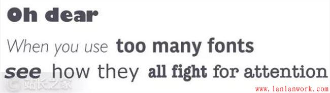 當(dāng)然,你還可以在設(shè)計(jì)中使用兩種字體(一種用于標(biāo)題,一種用于其他文本,比如段落,標(biāo)題等等)。我們很少在設(shè)計(jì)中看到兩種以上的字體,但出現(xiàn)這種情況時,是有一定原因的。