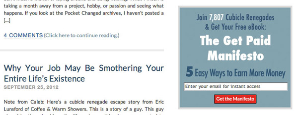 Pocket Changed的訂閱表單是個(gè)不錯(cuò)的例子,他們向訪問者展示了當(dāng)前已有多少人進(jìn)行了訂閱下載;此外,他們也非常簡(jiǎn)單直接的讓訪問者了解到在填寫郵箱后可以得到什么。如果可以再加入一些來自真實(shí)訂閱用戶的贊許反饋,這個(gè)表單的轉(zhuǎn)化效果會(huì)更好。