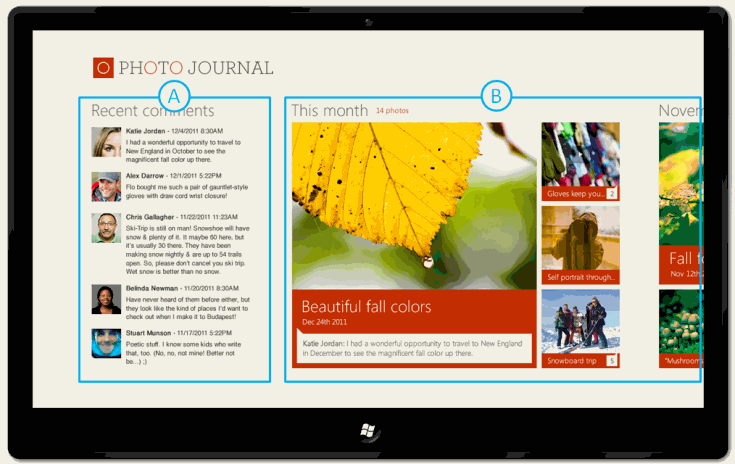 我們將要研究的是一款相片日志應用,用戶可以在線查看和管理他們的照片或視頻。下圖是這款應用的Metro版本: