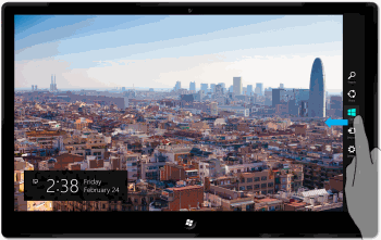 下面兩張圖片分別演示了調出app bar和charms bar的方法: