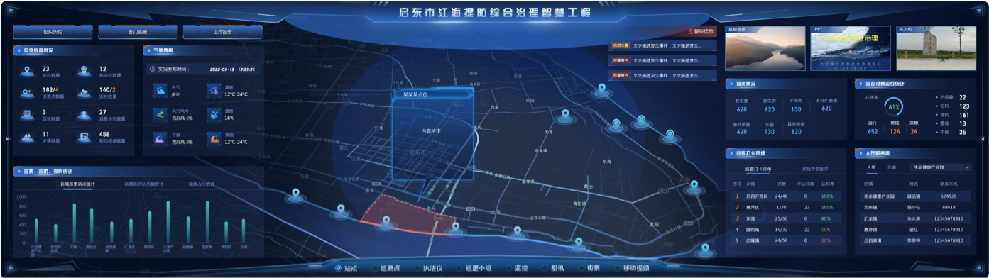為進(jìn)一步加強(qiáng)沿江沿海岸堤安全防范和綜合治理工作,根據(jù)市委市政府部署牽頭打造江海堤防綜合治理智慧工程。按照?qǐng)?jiān)持“立足預(yù)防、綜合施策”總原則,運(yùn)用互聯(lián)網(wǎng)、大數(shù)據(jù)、云計(jì)算、人工智能等技術(shù)手段,圍繞沿江沿海生態(tài)保護(hù)、禁漁禁采、船舶管理、防汛防臺(tái)、打擊走私、旅游安全管理、灘涂管理、日常風(fēng)險(xiǎn)防控等重點(diǎn)工作,切實(shí)提升綜合治理水平與應(yīng)急處置能力。
