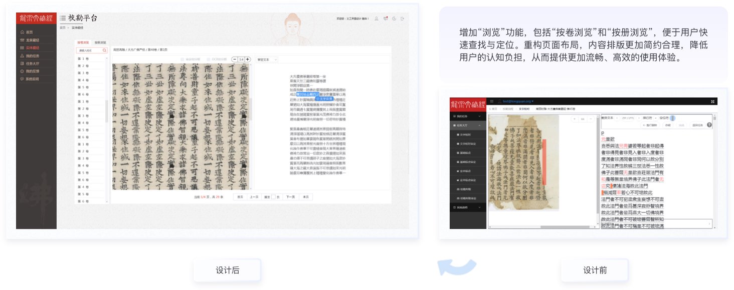 通過(guò)放大藏經(jīng)視圖的設(shè)計(jì)方式,創(chuàng)造一種沉浸式的瀏覽環(huán)境,用戶(hù)可以更加專(zhuān)注于內(nèi)容,從而增加停留在界面的時(shí)間,有助于提升瀏覽體驗(yàn)。