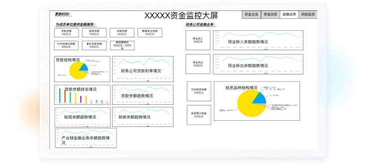 右側(cè)是客戶給的原型,只是把要展示的數(shù)據(jù)簡(jiǎn)單羅列了一下??紤]到大屏應(yīng)用場(chǎng)景,比如公司會(huì)議,集團(tuán)視察,行業(yè)參觀等,都是宏觀數(shù)據(jù)展示為主。所以在設(shè)計(jì)時(shí)不僅要考慮美觀性,更要考慮到整體的交互布局以及交互方式,確保關(guān)鍵數(shù)據(jù)和指標(biāo)在界面上以醒目的方式呈現(xiàn),以便用戶快速識(shí)別和理解。設(shè)計(jì)清晰簡(jiǎn)潔的布局,避免信息過(guò)載,使用戶能夠輕松找到需要的信息。