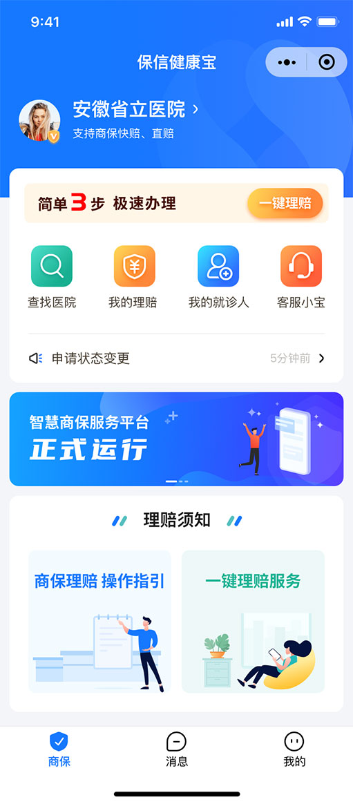 保信健康寶是聯(lián)合保險公司、醫(yī)院打造的智慧商保報案統(tǒng)一的線上理賠服務(wù)平臺,該平臺無需用戶線下跑腿,醫(yī)療數(shù)據(jù)采用區(qū)塊鏈技術(shù)和銀行級加密傳輸,數(shù)據(jù)安全雙保險??萍假x能理賠審核,極速提升理賠效率,理賠款直接轉(zhuǎn)入用戶指定銀行。