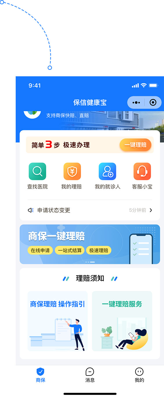 保信健康寶小程序是智慧商保報案統(tǒng)一服務(wù)平臺,讓就醫(yī)更方便,讓理賠更便捷,理賠安全精準,服務(wù)便民惠民。其產(chǎn)品優(yōu)勢是一鍵申請,快速便捷、本人授權(quán),保護隱私、商保結(jié)算,安全放心、極速理賠,快速到賬。